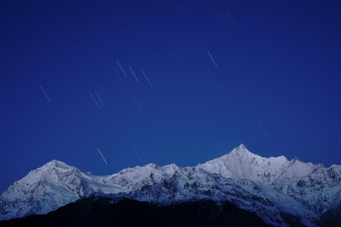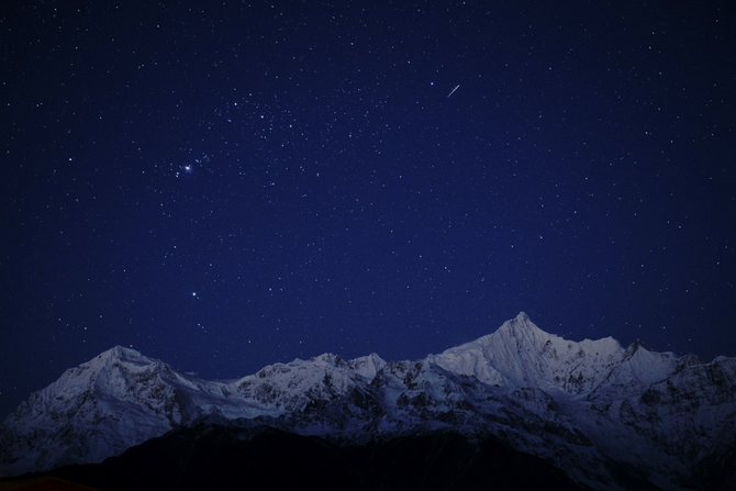 这次在梅里雪山运气不错,凌晨云散,看到了流星下的卡瓦格博。当时在酒店阳台上,使用24-105mm镜头拍摄。虽说最大光圈小一档,曝光的时候就必须提高一档ISO来弥补,但实际在后期检查画质的时候,并没有觉得图像质量有什么不能接受的地方。实际用到的ISO2500或ISO3200,还远没有达到A7RM3的高感极限。